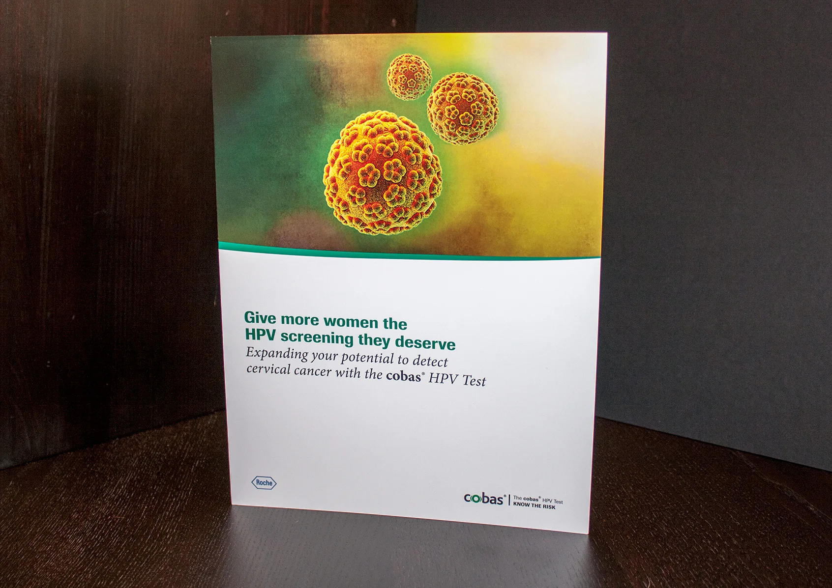 This brochure was requested by a client to portray their HPV test information in a simple folded brochure. They had a lot of charts, and data points that needed to be shown in a clean, yet efficient manner, and still keep the overall look and feel of their brand. I was able to create iconography to break up their bullet points, draw charts to illustrate their numbers, and lay out this brochure getting their information in one clean spread.